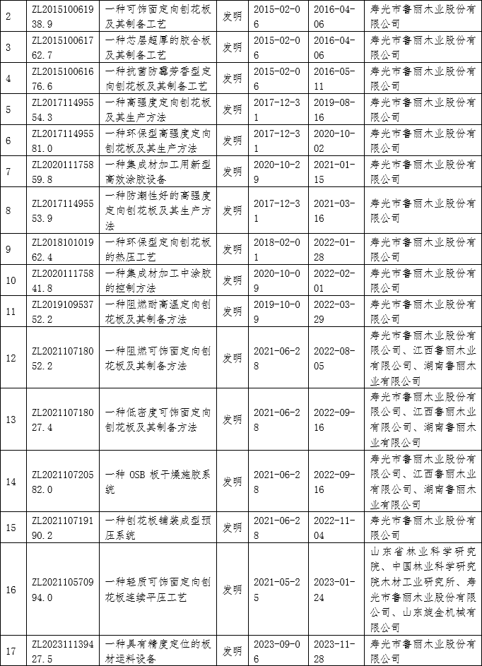 科技獎勵:21項(其中中國專利優(yōu)秀獎2項,山東省科技進步三等獎1項,梁希林業(yè)科學技術獎二等獎1項,濰坊市科技進步二等獎,濰坊市專利獎一等獎1項、二等獎2項、 三等獎1項,中國木材與木制品行業(yè)專利獎金獎2項,中國木業(yè)科技獎特等獎1項,中國建材與家居行業(yè)科學技術獎二等獎2項,木材保護工業(yè)協(xié)會科技進步二等獎2項, 中國林業(yè)產(chǎn)業(yè)創(chuàng)新獎(人造板業(yè))三等獎1項,中國林業(yè)科學研究院重大科技成果獎1項,山東省優(yōu)秀企業(yè)創(chuàng)新成果一等獎2項,山東省企業(yè)技術創(chuàng)新優(yōu)秀成果優(yōu)秀獎2項)