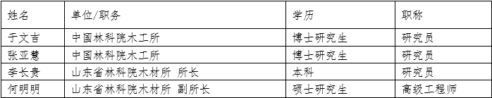 中國林業(yè)科學研究院木材工業(yè)研究所、山東省林業(yè)科學研究院、東北林業(yè)大學、北京林業(yè)大學、內(nèi)蒙古農(nóng)業(yè)大學